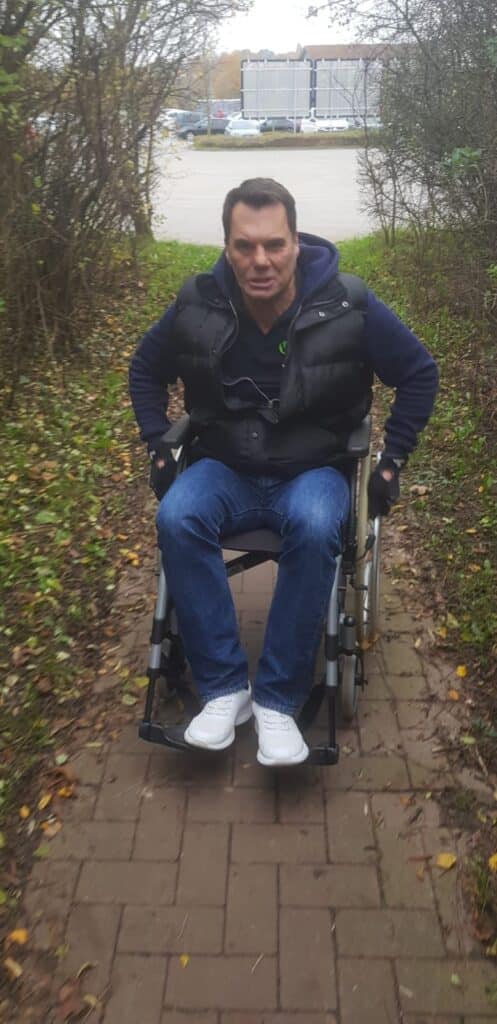 Vom Schreibtisch in den Rollstuhl für den guten Zweck.