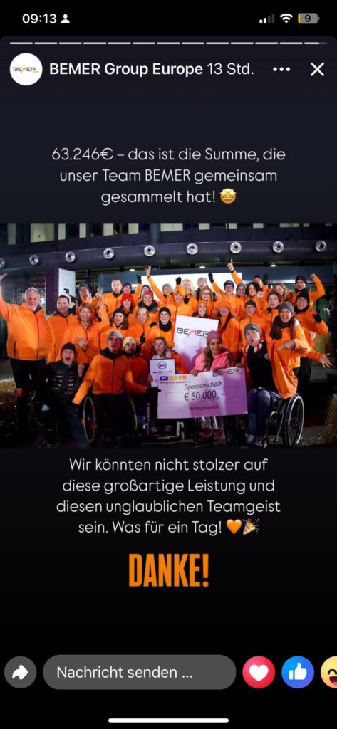 Alain – als Teil der Staffel – hat gemeinsam mit seinem Team in Köln nicht nur für den guten Zweck gekämpft und 633.381,00 Euro eingefahren„, sondern auch gezeigt, wie wichtig Teamarbeit und der Abbau von Barrieren sind. Ob beim Sport, bei gemeinsamen Herausforderungen oder emotionalen Momenten – die „24h Inklusions-Challenge“ war für ihn und uns ein echtes Highlight in diesem Jahr!