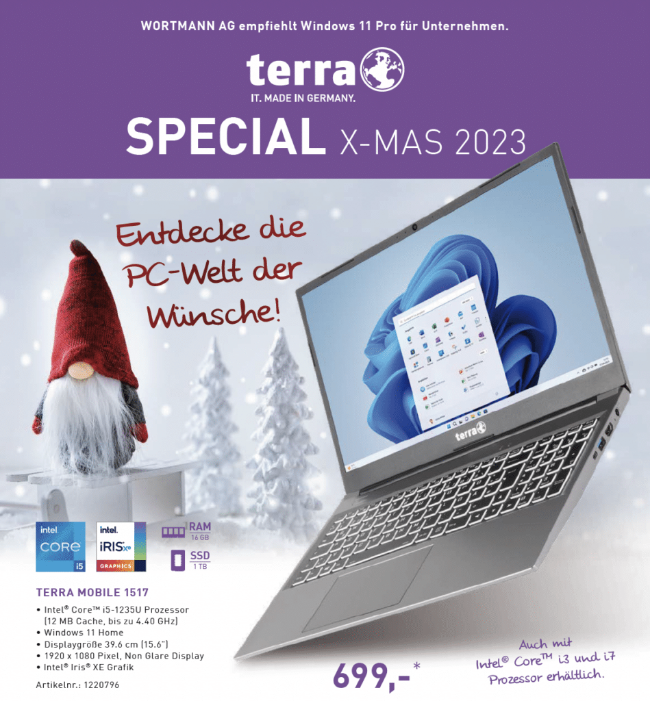 Es ist wieder soweit – Gemeinsam mit unserem System- und Lösungspartner WORTMANN AG geben wir den Startschuss für unser EDV – SPECIAL X-MAS 2023 mit wirklich tollen Aktionspaketen vom 18.11.2023 bis zum 05.01.2024.